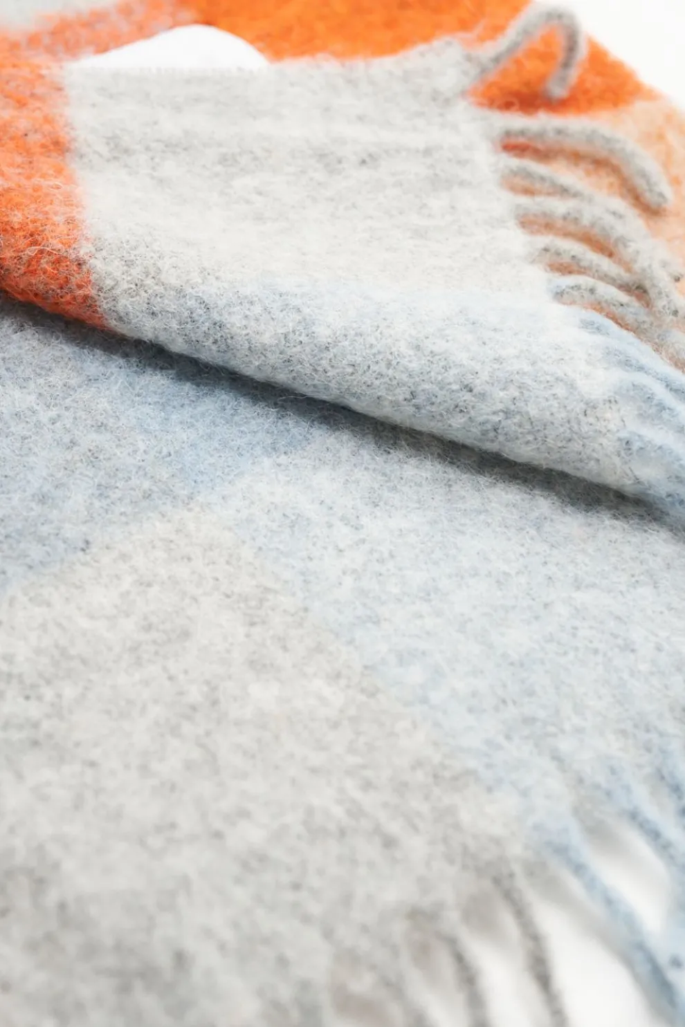 In Blauw/Oranje. Geruite Sjaal Gemaakt Van Een Zachte Mix Van Alpaca En Wol. Rechthoekige Vorm In Een Oversized Look. Geruit Ontwerp Met Franjes Aan De Randen. Deze Zachte Wollen Sjaal Is De Perfecte Metgezel Voor Koele Winterdagen. Onze Sjaals Zijn Ontworpen In Kopenhagen En Gemaakt In Italië.182 Cm X 39 Cm