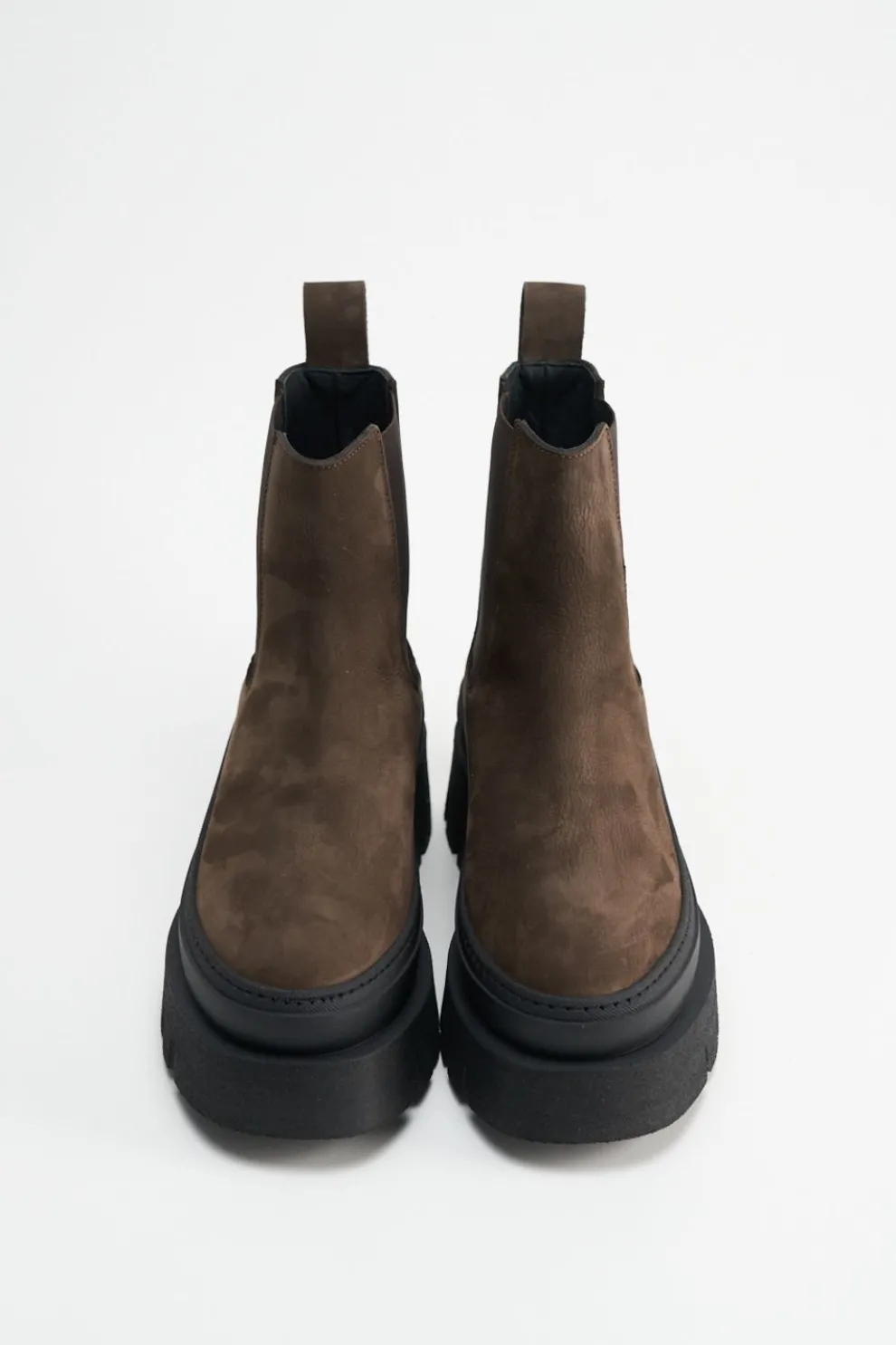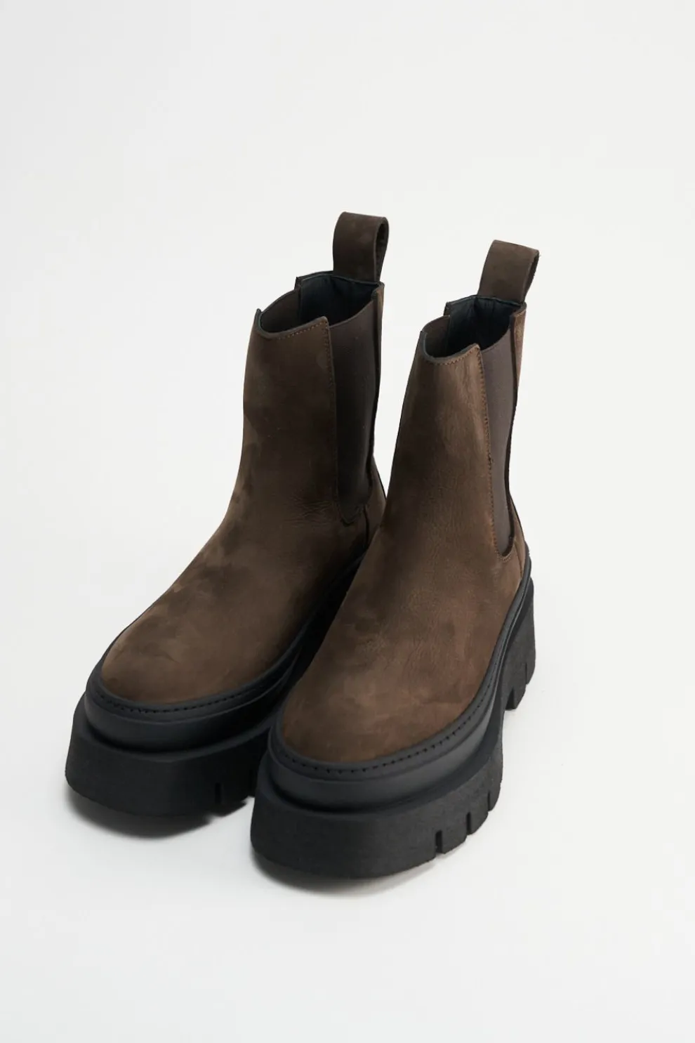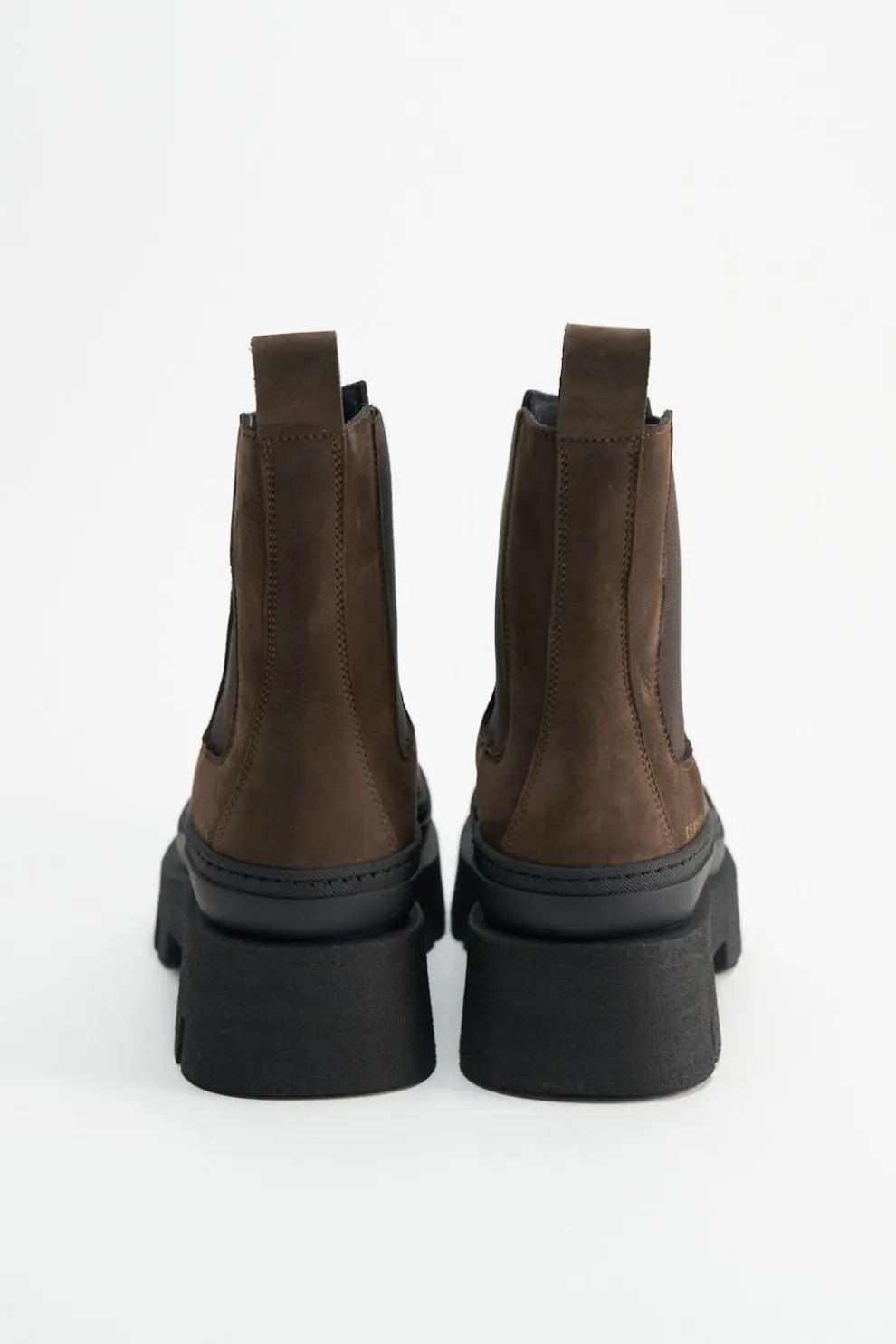 In Bruin. Chelsealaarzen Gemaakt Van Zacht Nubuckleer. Enkelhoog Chelsea-Silhouet. Ronde Dop. Elastische Inzetstukken. Trek De Lus Aan De Schacht. Goudkleurig Logo Aan De Buitenkant. Toon Op Toon, De Ideale Metgezel Voor Koele Herfstdagen.Onze Schoenen Zijn Ontworpen In Kopenhagen En Vervaardigd In Europa. Het Leer Komt Uit Geselecteerde, Door Een Familie Gerunde Fabrieken In Italië.