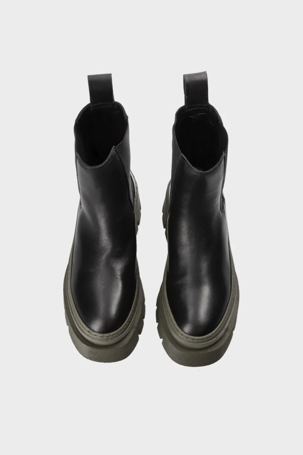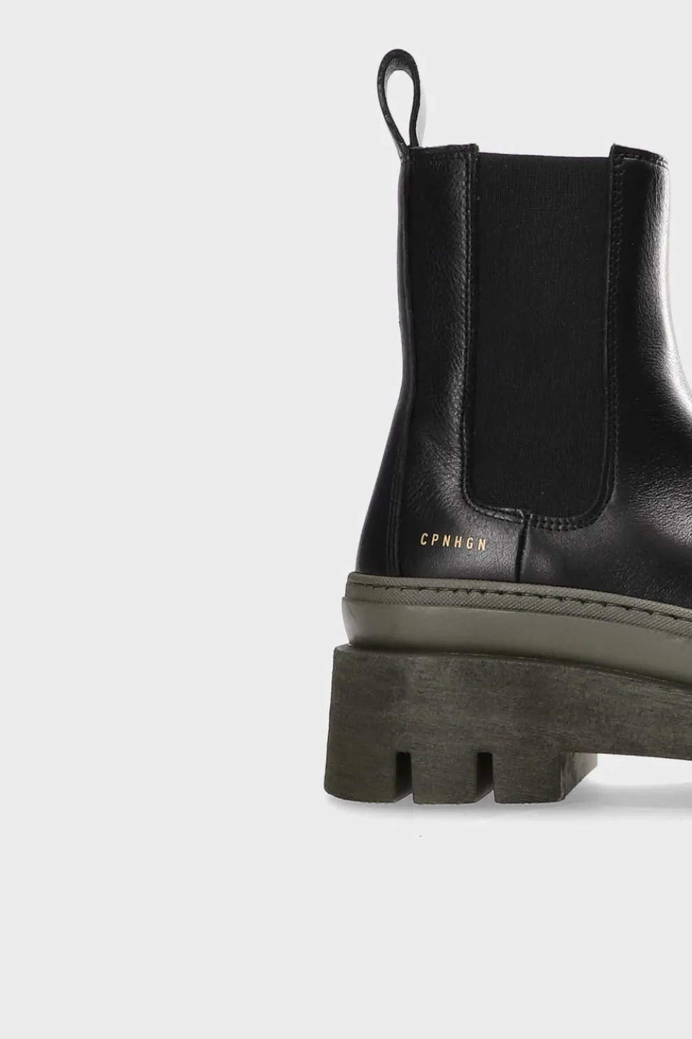 In Zwart En Groen. Chelsealaarzen Gemaakt Van Glad Leer. Enkelhoog Silhouet Met Een Ronde Neus. Elastische Inzetstukken. Trek De Lus Aan De Schacht. Goudkleurig Logo Aan De Buitenkant. Expressieve Platformzolen Maken Deze Stijl Tot Een Blikvanger.Onze Schoenen Zijn Ontworpen In Kopenhagen En Vervaardigd In Europa. Het Leer Komt Uit Geselecteerde Familiebedrijven In Italië.