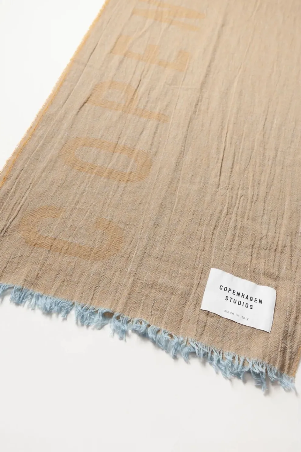 In Lichtblauw En Oranje. Tweekleurige Sjaal Gemaakt Van Een Fijne Katoenmix. Met Logo-Opschrift. Korte Franjes Aan De Randen.195 Cm X 50 Cm