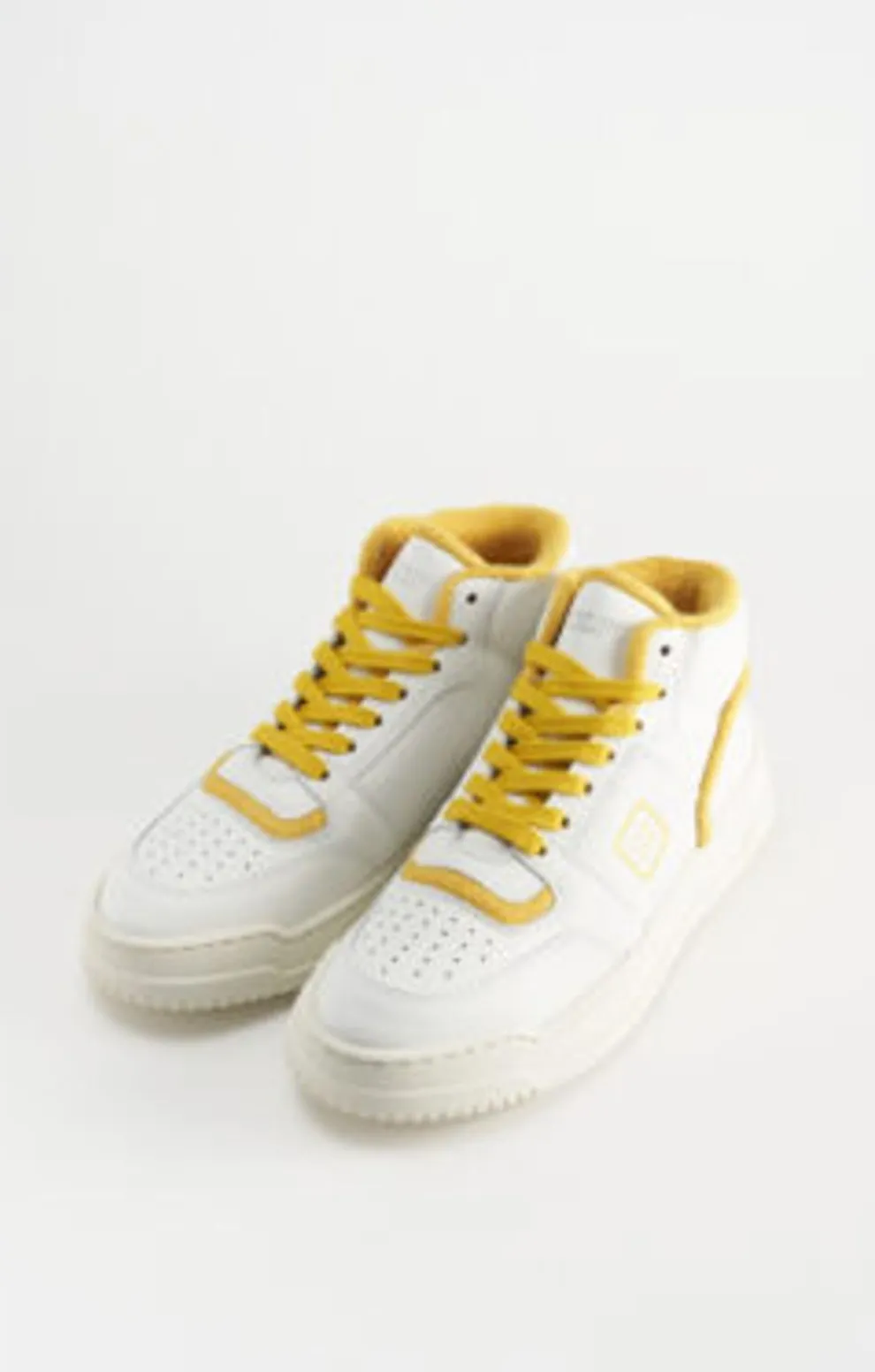 In Wit & Geel. Hoge Sneakers Gemaakt Van Glad Leer. Retrosilhouet. Gevoerde Schacht. Contrasterende Elementen Met Geborduurde Details En Kantpatronen. Logo-Statement In Reliëf Aan De Buitenkant. Vetersluiting Aan De Voorkant. Ronde Dop. Platte Gestructureerde Rubberen Zool. Een Expressieve Retrostijl Met Kleurrijke Accenten.Onze Schoenen Zijn Ontworpen In Kopenhagen En Vervaardigd In Europa. Het Leer Is Afkomstig Van Geselecteerde, Door Een Familie Gerunde Fabrieken In Italië.