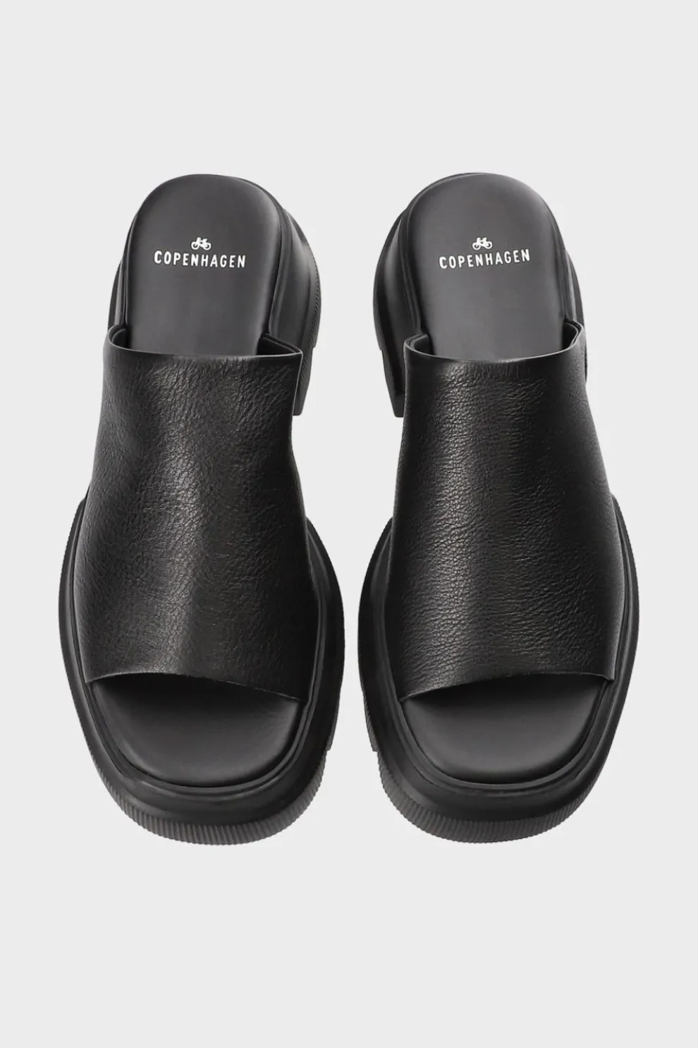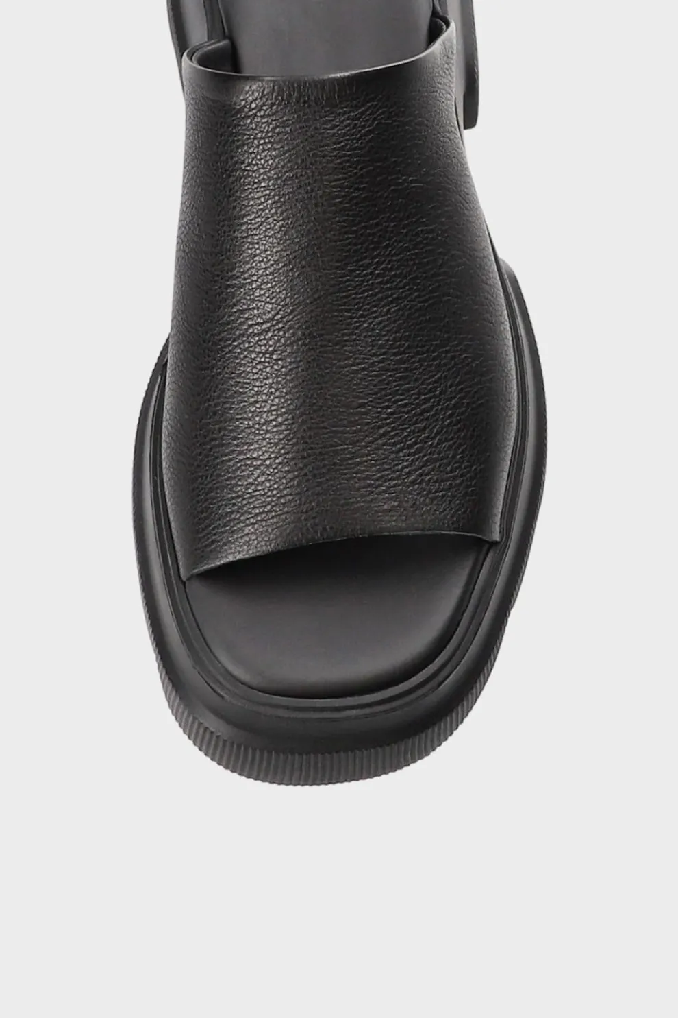 In Het Zwart. Sandalen Van Glad Leer. Met Brede Band. Dikke Rubberen Platformzool Met Geometrische Details En Dikke Spikes. Minimalistische Slippers Met Een Opvallend Profiel.Onze Schoenen Zijn Ontworpen In Kopenhagen En Gemaakt In Europa. Het Leer Komt Uit Geselecteerde, Door Een Familie Gerunde Fabrieken In Italië.