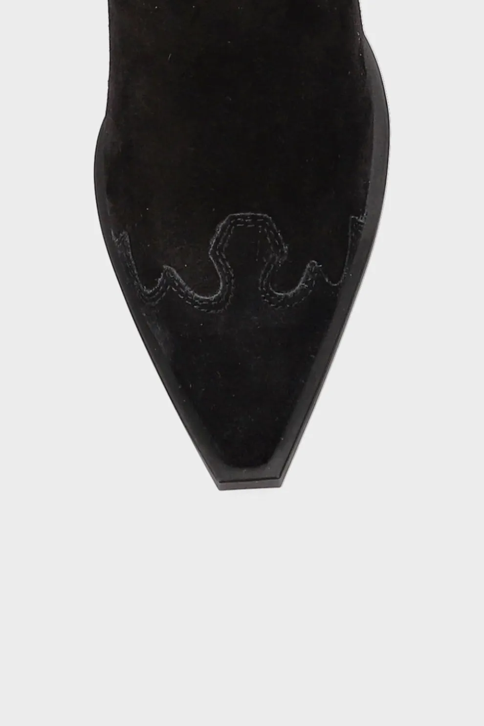 In Het Zwart. Enkelhoge Texano Enkellaarzen Gemaakt Van Zacht Suède. Slank Silhouet. Brede Schacht. Contrasterende Elementen Met Applicaties En Geborduurde Details. Rits Aan De Binnenkant. Trek De Lus Aan De Buitenkant. Rechthoekig Gevormd, Spitse Neus. Gladde Rubberen Zool Met Schuine Blokhak. Minimalistische Enkellaarzen In Texano-Stijl.Onze Schoenen Zijn Ontworpen In Kopenhagen En Gemaakt In Europa. Het Leer Is Afkomstig Van Geselecteerde, Door Een Familie Gerunde Fabrieken In Italië.