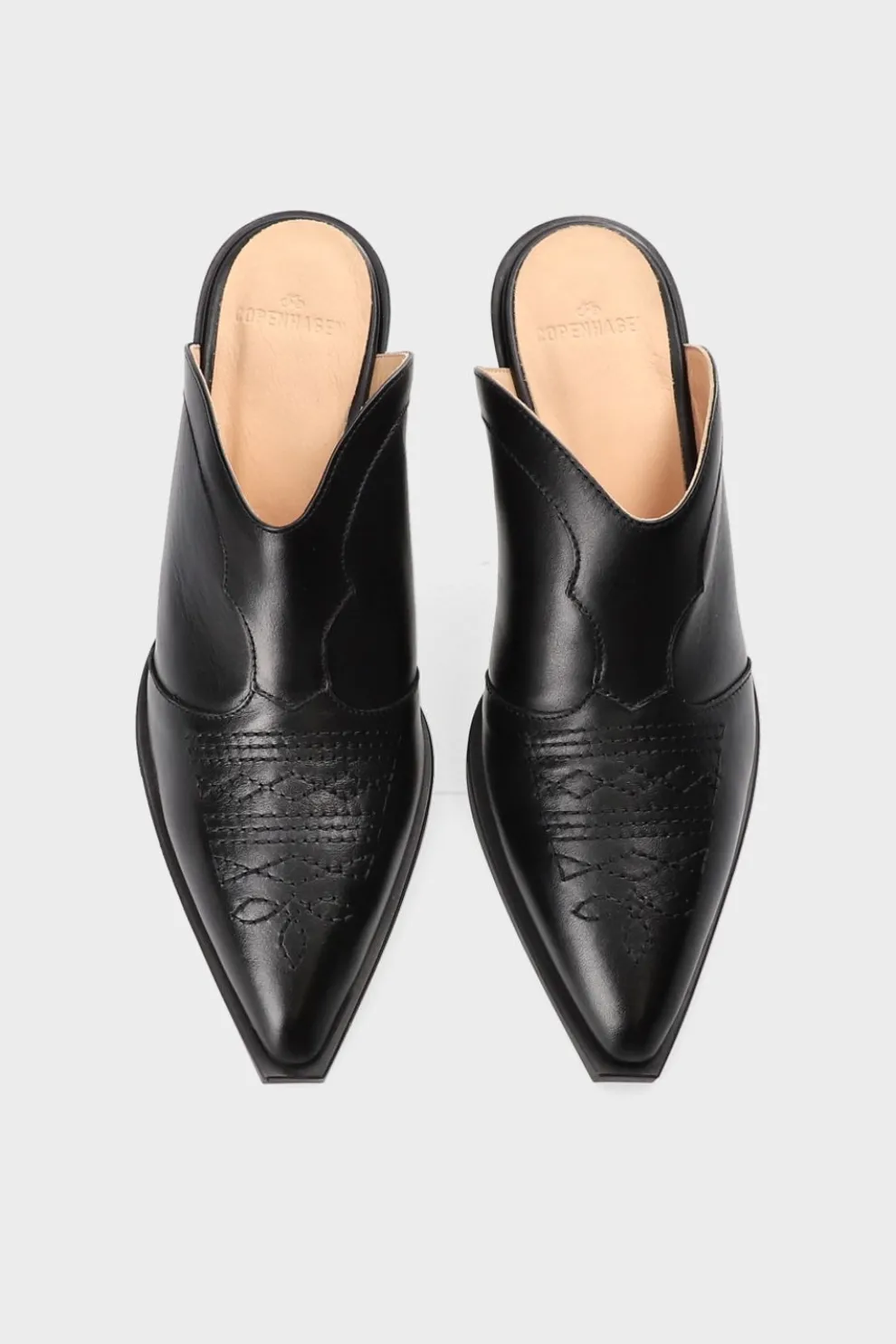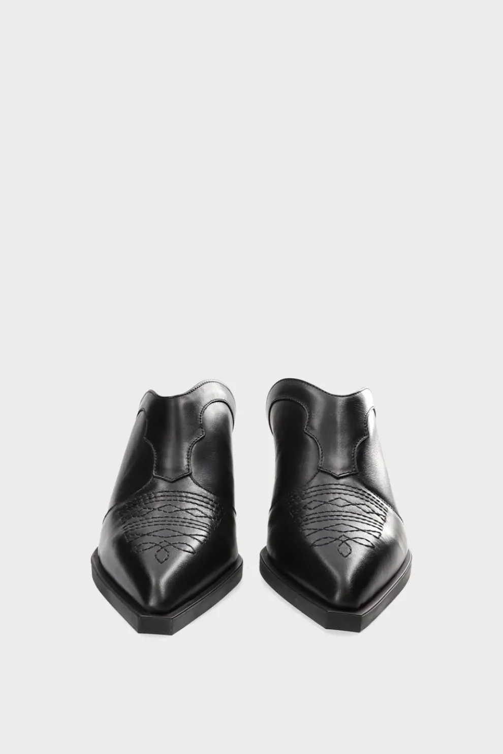 In Het Zwart. Texano Muiltjes Gemaakt Van Glad Leer. Slank Silhouet. Instapmodel. Geborduurde Versieringen. Rechthoekig Gevormd, Spitse Neus. Gladde Rubberen Zool Met Schuine Midi-Blokhak. Texano-Muiltjes Met Speciale Designelementen.Onze Schoenen Zijn Ontworpen In Kopenhagen En Vervaardigd In Europa. Het Leer Is Afkomstig Van Geselecteerde, Door Een Familie Gerunde Fabrieken In Italië.