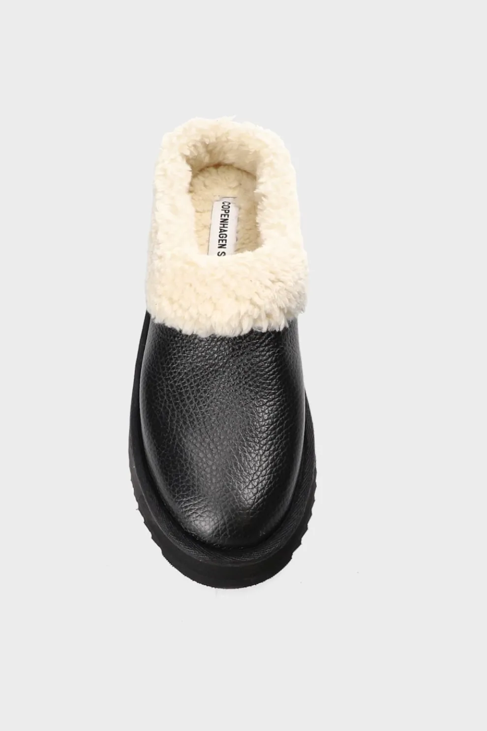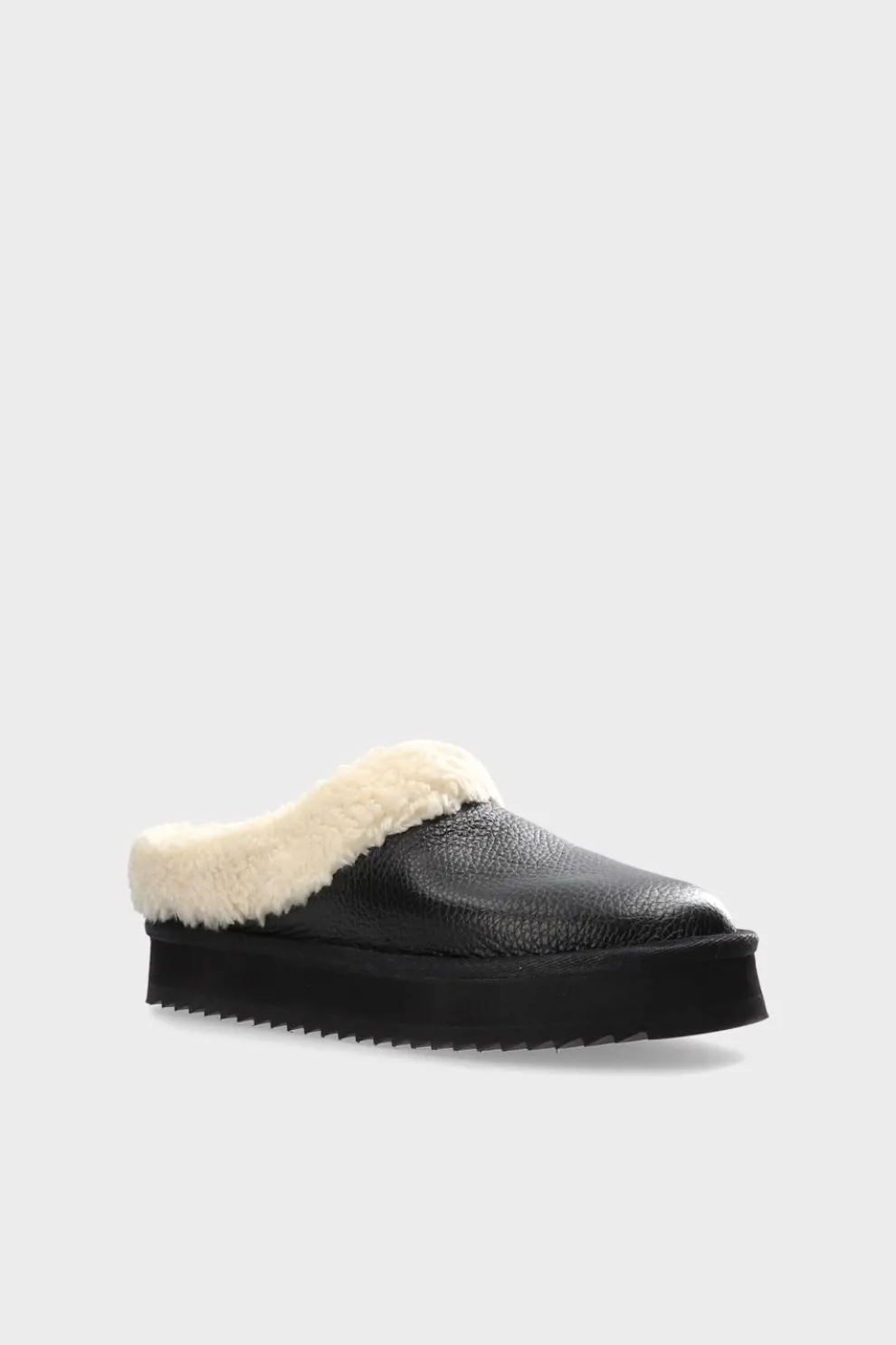 In Het Zwart. Muiltjespantoffels Van Generfd Leer Met Warme Teddyvoering. Grof Silhouet. Instapmodel. Ronde Neus. Robuuste Rubberen Zool Met Licht Profiel. Stijlvolle Pantoffels Om Je Goed Te Voelen.Onze Schoenen Zijn Ontworpen In Kopenhagen En Vervaardigd In Europa. Het Leer Is Afkomstig Van Geselecteerde, Door Een Familie Gerunde Fabrieken In Italië.