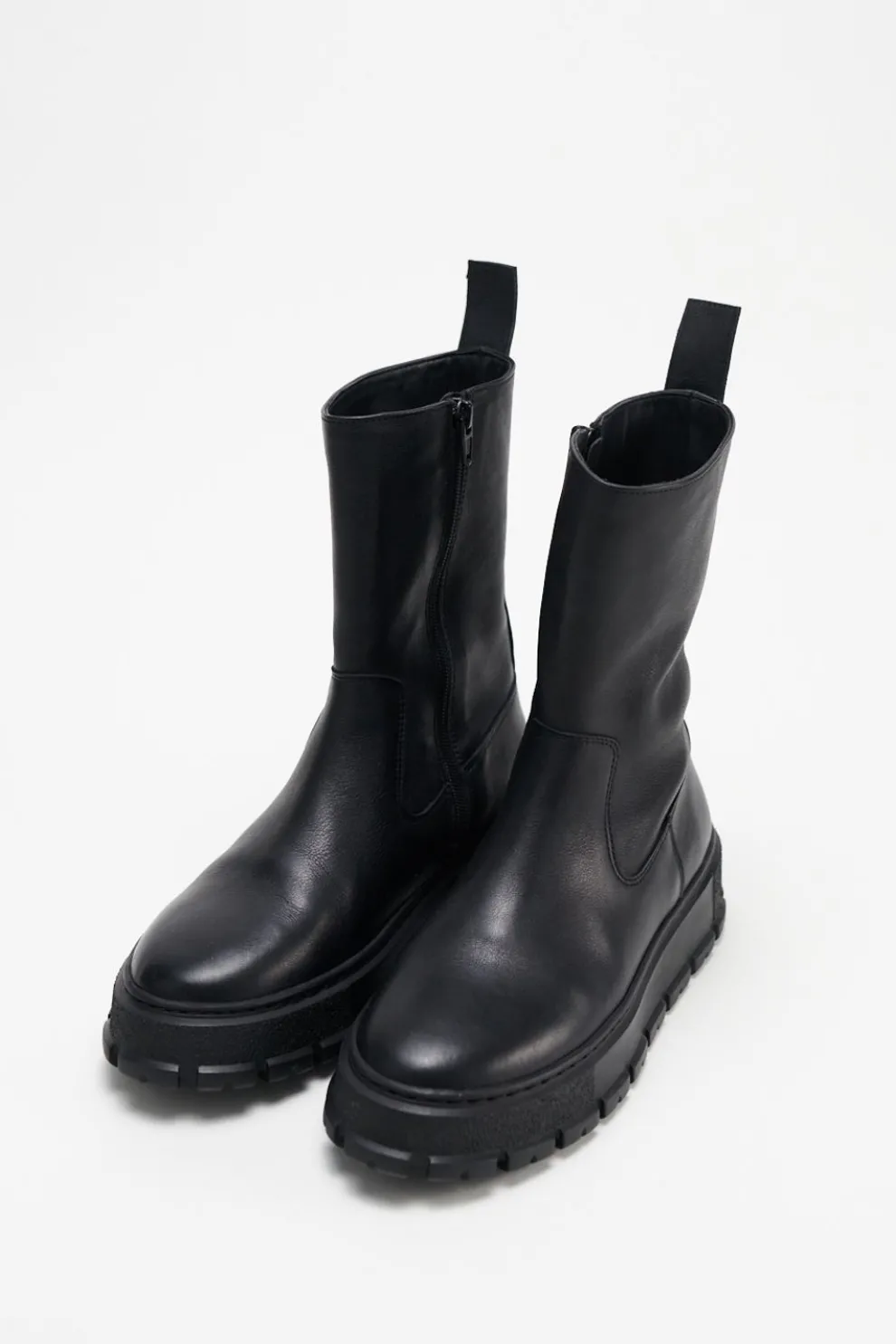 In Het Zwart. Middelhoge Laarzen Gemaakt Van Glad Leer. Minimalistisch Silhouet. Met Geborduurde Details. Trek Het Lusje Aan De Achterkant. Rits Aan De Binnenkant. Een Veelzijdige Stijl Die Indruk Maakt Door Zijn Rechtlijnigheid.Onze Schoenen Zijn Ontworpen In Kopenhagen En Vervaardigd In Europa. Het Leer Komt Uit Geselecteerde, Door Een Familie Gerunde Fabrieken In Italië.