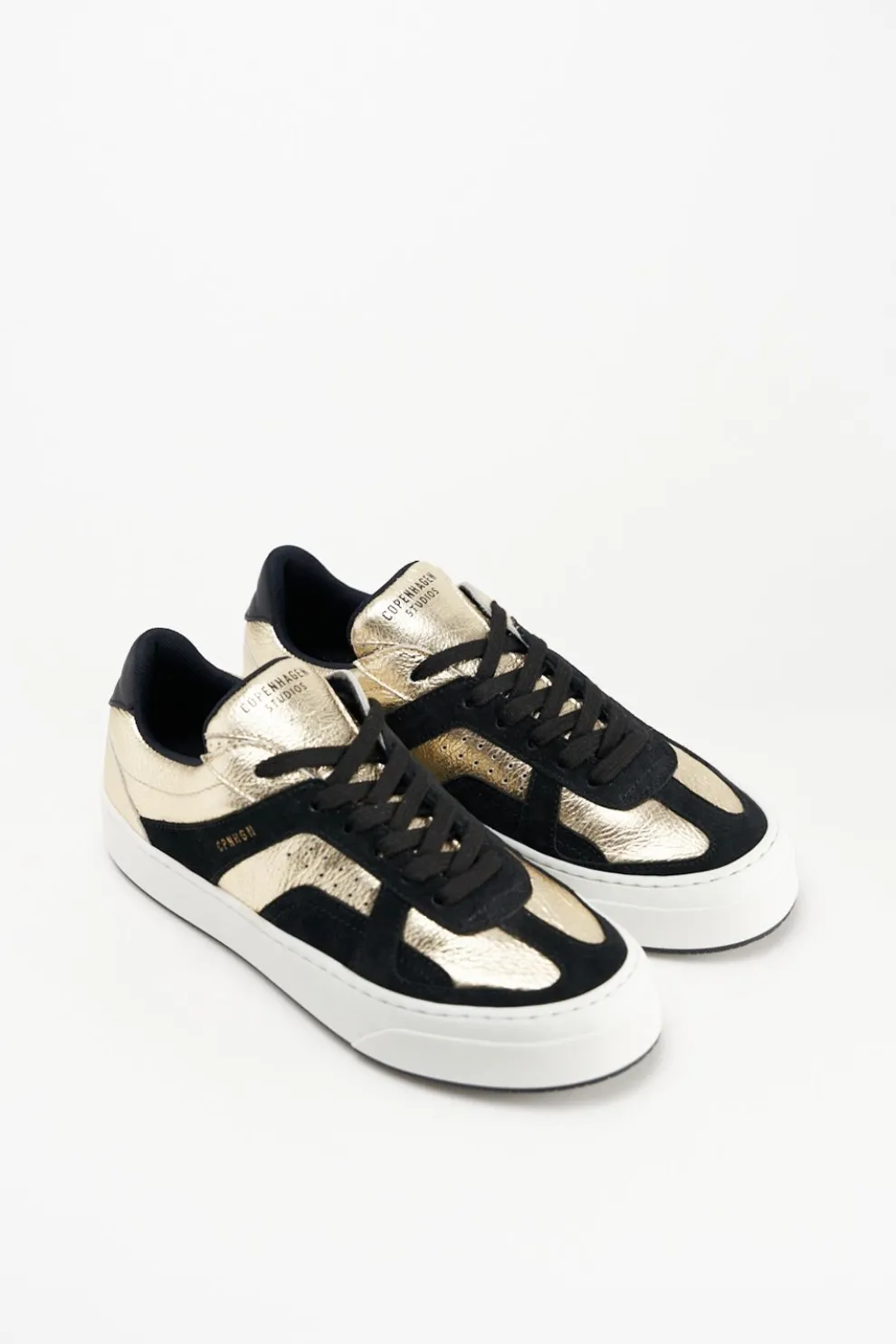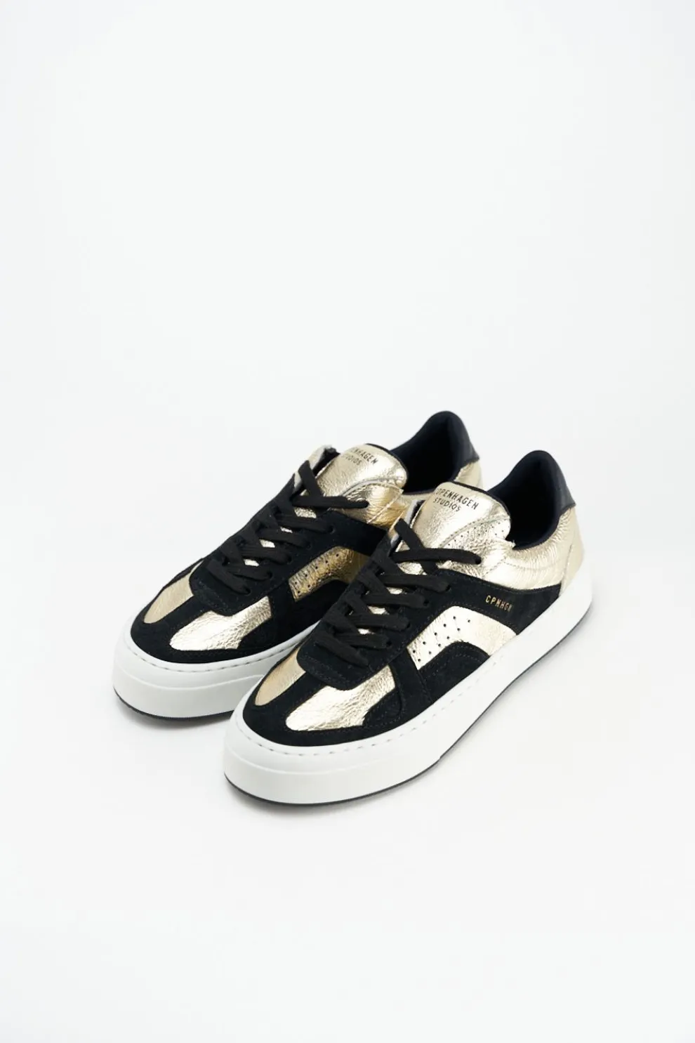 In Metallic Goud En Zwart. Lage Sneakers Gemaakt Van Nylon En Glad Leer. Retrosilhouet. Contrasterende Elementen Met Geborduurde Details. Vetersluiting Aan De Voorkant. Branding Op De Tong Van De Schoen. Rubberen Zool Met Spatbord En Logo Op De Achterkant. Iets Taps Toelopende Vorm. Futuristische Sneakers Met Goudkleurige Details.Onze Schoenen Zijn Ontworpen In Kopenhagen En Gemaakt In Europa. Het Leer Is Afkomstig Van Geselecteerde Familiefabrieken In Italië