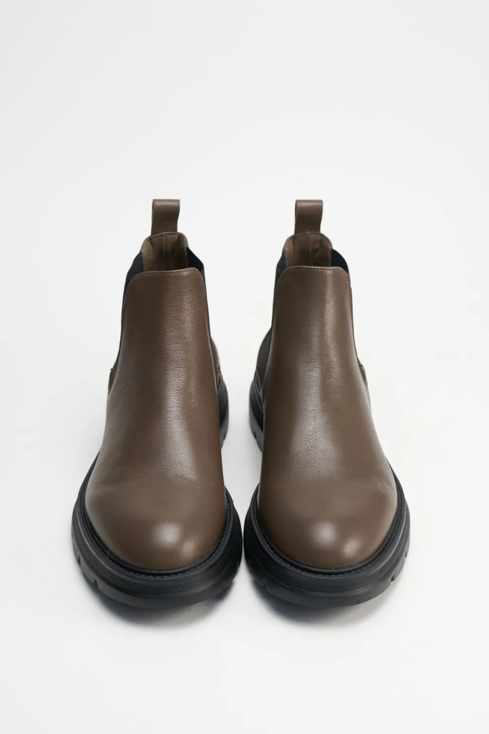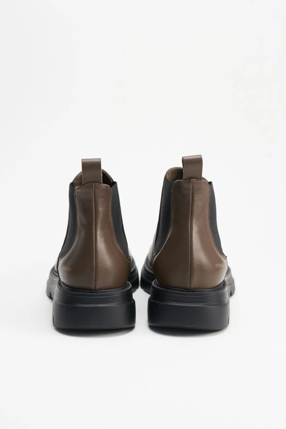 In Kaki. Chelsealaarzen Gemaakt Van Glad Leer. Laag Chelsea-Silhouet. Iets Taps Toelopende Punt. Elastische Inzetstukken. Trek De Lus Aan De Schacht. Goudkleurig Logo Aan De Buitenkant. Minimalistische Chelsea’S Met Een Sportieve Twist.Onze Schoenen Zijn Ontworpen In Kopenhagen En Gemaakt In Europa. Het Leer Komt Uit Geselecteerde Familiebedrijven In Italië.