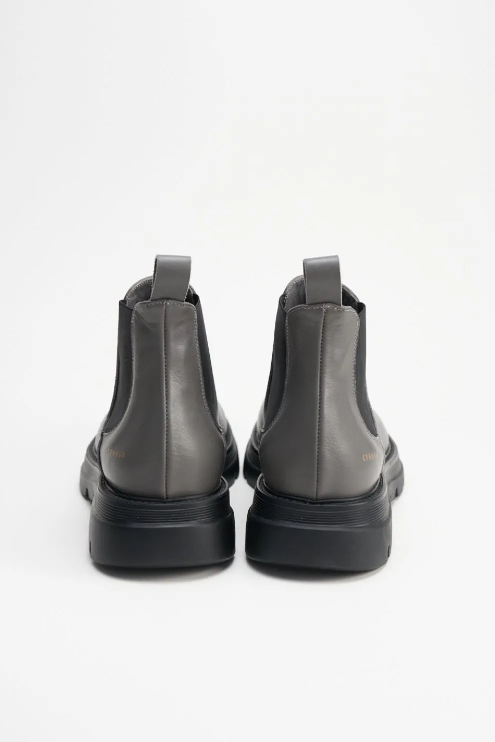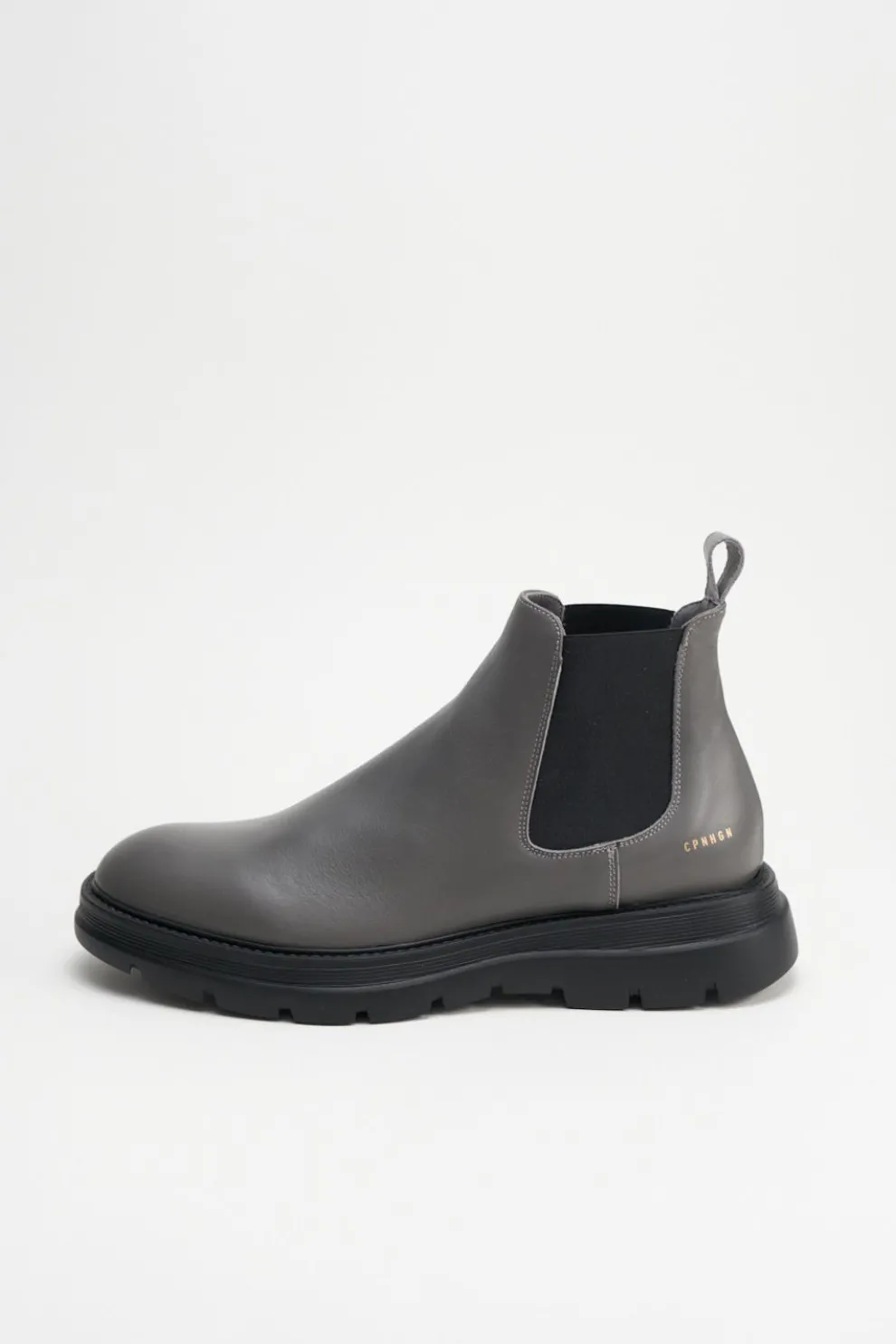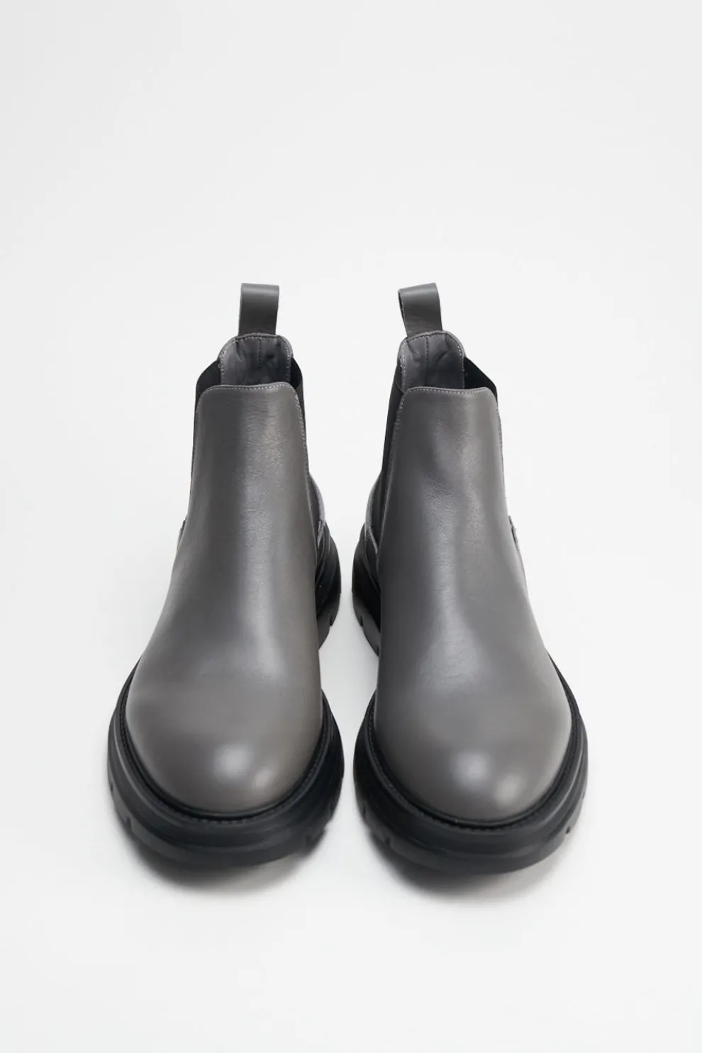 In Formeel Grijs. Chelsealaarzen Gemaakt Van Glad Leer. Laag Chelsea-Silhouet. Iets Taps Toelopende Punt. Elastische Inzetstukken. Trek De Lus Aan De Schacht. Goudkleurig Logo Aan De Buitenkant. Minimalistische Chelsea’S Met Een Sportieve Twist.Onze Schoenen Zijn Ontworpen In Kopenhagen En Gemaakt In Europa. Het Leer Komt Uit Geselecteerde Familiebedrijven In Italië.