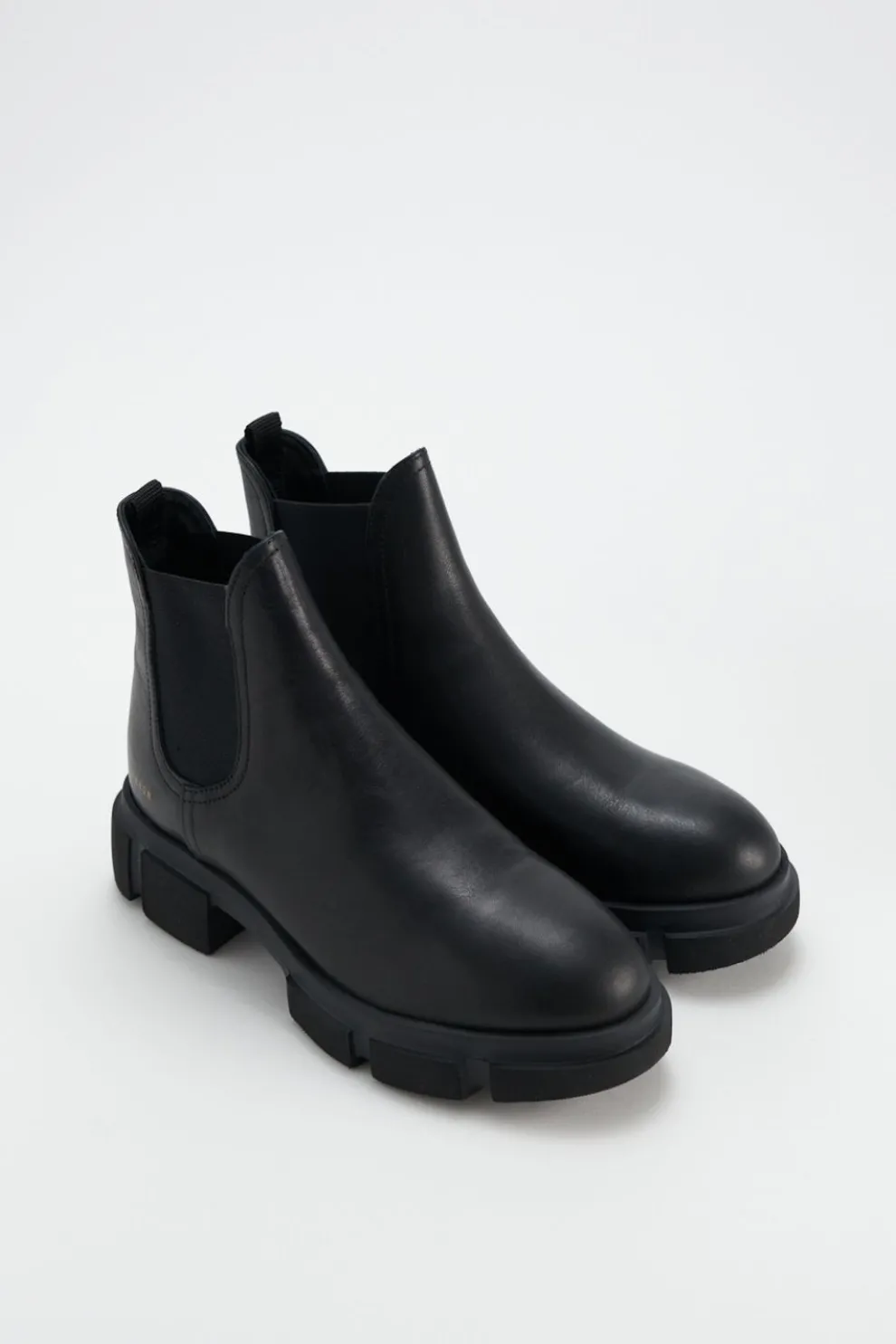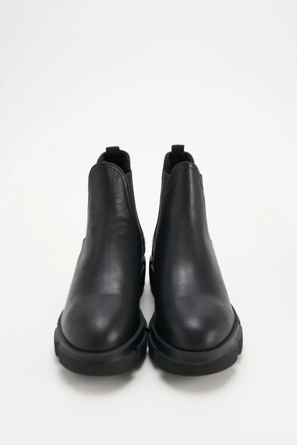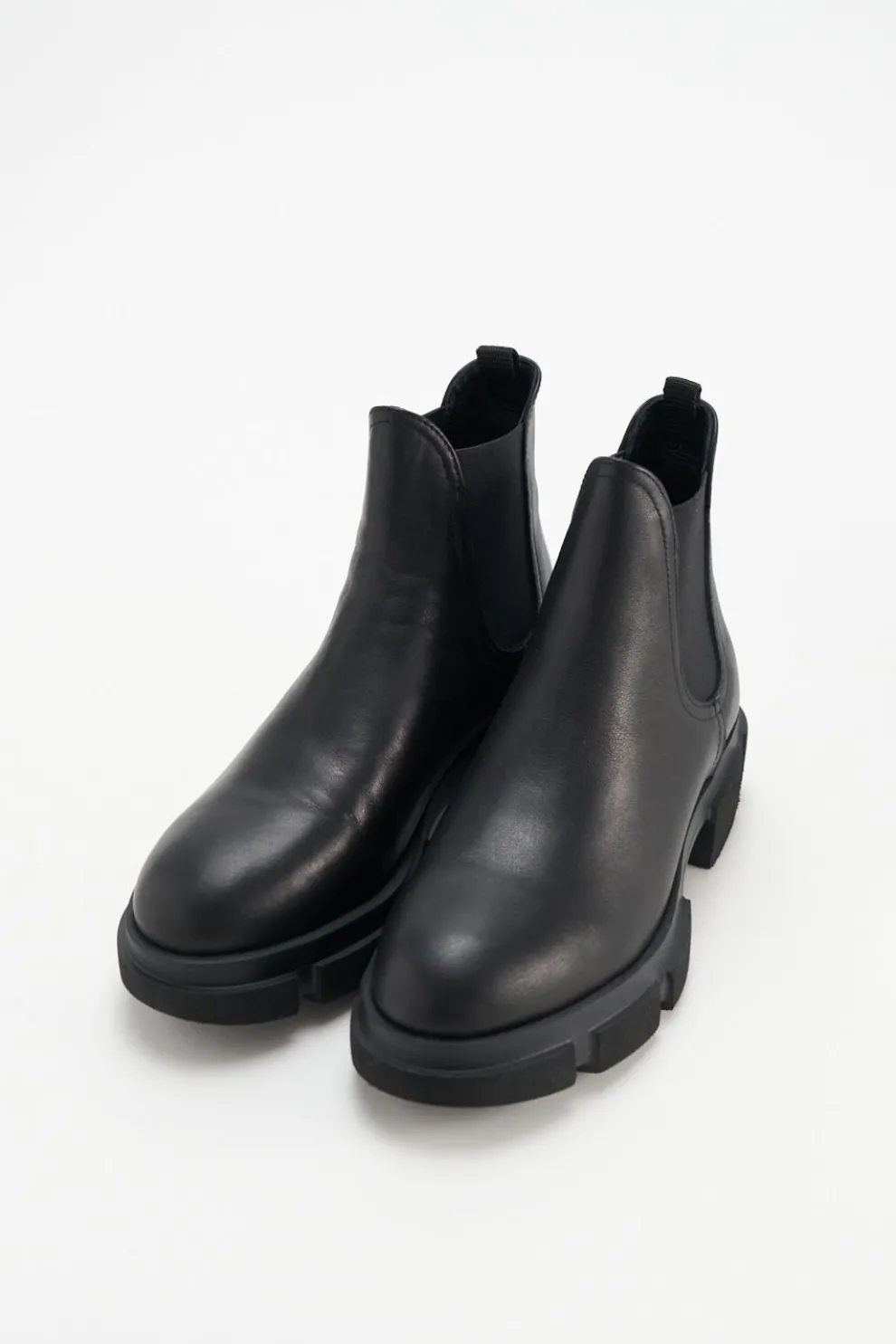 In Het Zwart. Lage Enkellaarsjes Van Glad Leer Met Een Dikke Zool. Elastische Zijpanelen. Trek Het Lusje Aan De Hiel. Subtiele Branding Aan De Buitenkant. Afgerond Teengedeelte. Een Opvallende Stijl.Onze Schoenen Zijn Ontworpen In Kopenhagen En Vervaardigd In Europa. Het Leer Komt Uit Geselecteerde, Door Een Familie Gerunde Fabrieken In Italië.