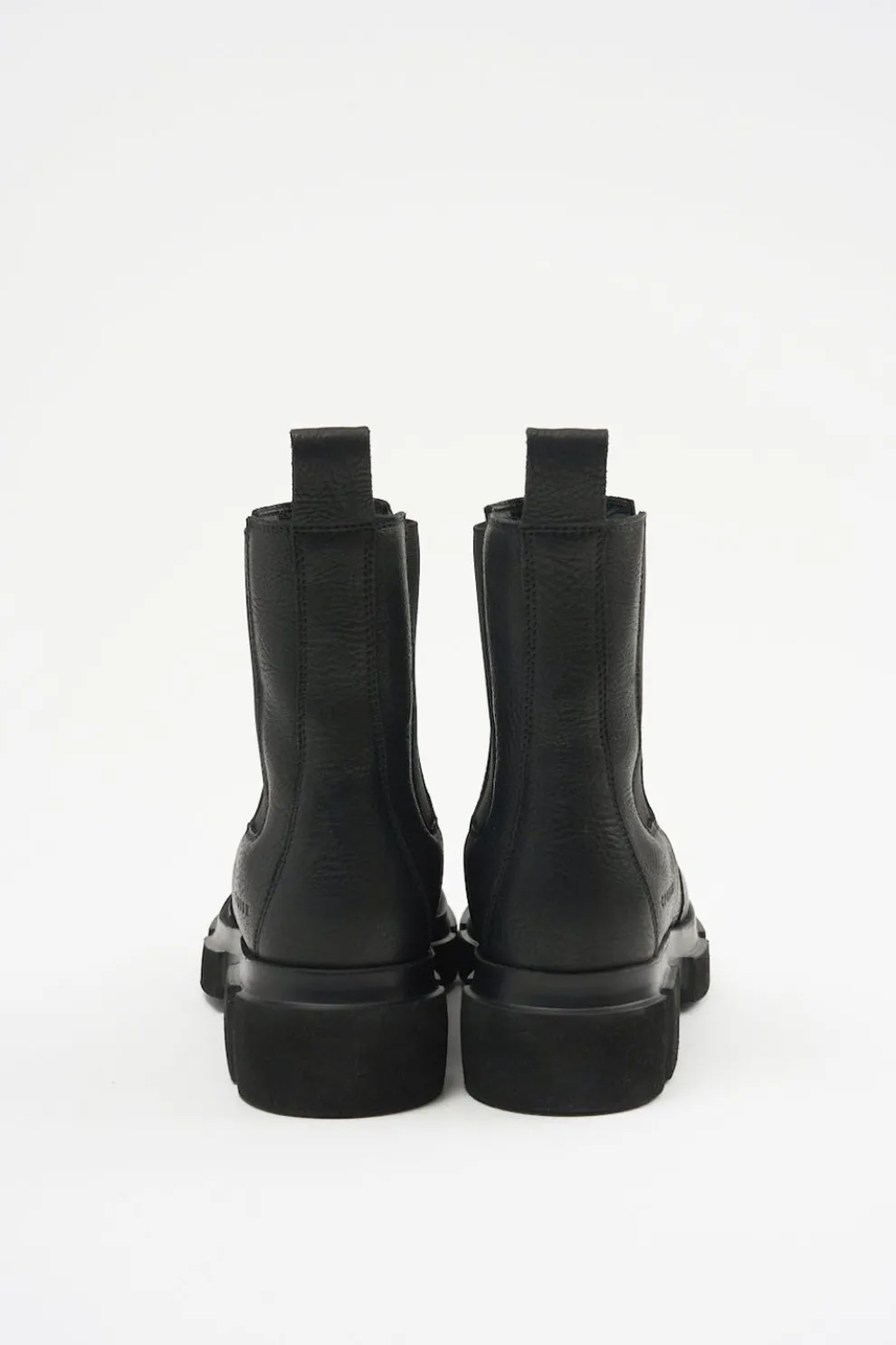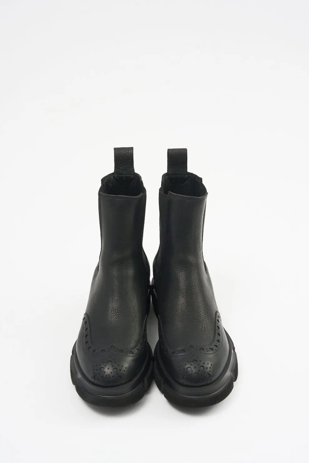 In Het Zwart. Enkelhoge Chelsea-Laarzen Gemaakt Van Generfd Leer. Grof Silhouet. Met Moderne Kantpatronen In Broguestijl. Elastische Zijpanelen. Geborduurde Details. Trek Het Lusje Aan De Achterkant. Iets Taps Toelopend Teengedeelte. Robuuste Rubberen Zool Met Blokhak En Grof Profiel. Een Herinterpretatie Van De Cph570 In Scandinavisch Erfgoedontwerp.Onze Schoenen Zijn Ontworpen In Kopenhagen En Vervaardigd In Europa. Het Leer Is Afkomstig Van Geselecteerde, Door Een Familie Gerunde Fabrieken In Italië.