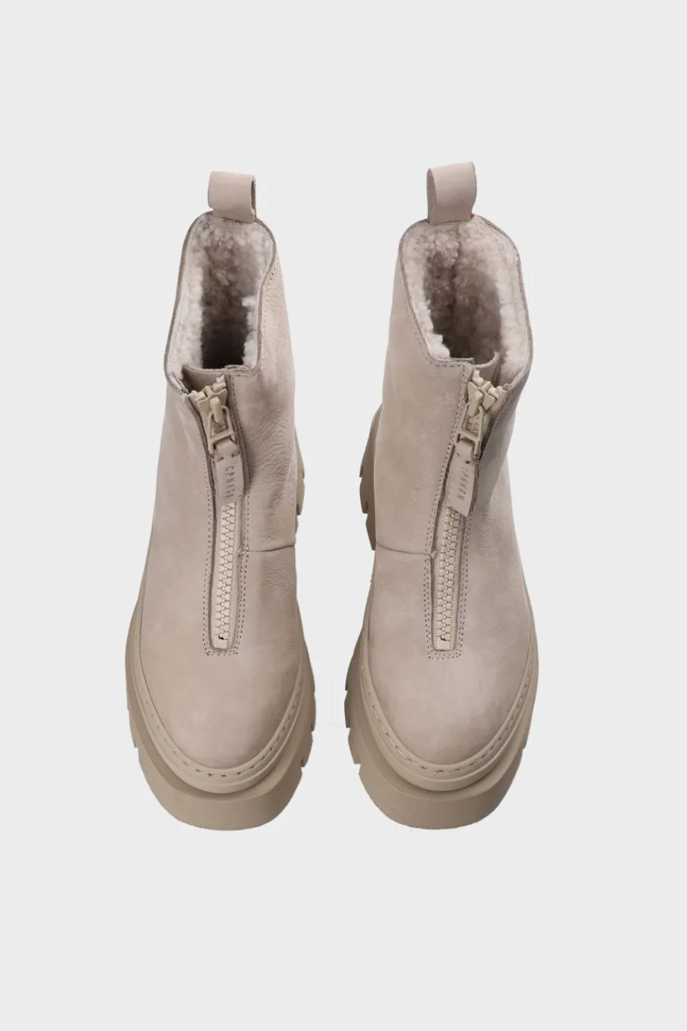 In Greige. Enkellaarzen Met Ritssluiting Van Nubuckleer Met Vegan Teddyvoering. Enkelhoog Silhouet. Ronde Dop. Ritssluiting Aan De Voorkant. Trek De Lus Aan De Schacht. Subtiele Branding Aan De Buitenkant. Een Warme En Relaxte Stijl Voor Koele Herfstdagen.Onze Schoenen Zijn Ontworpen In Kopenhagen En Gemaakt In Europa. Het Leer Komt Uit Geselecteerde, Door Een Familie Gerunde Fabrieken In Italië.