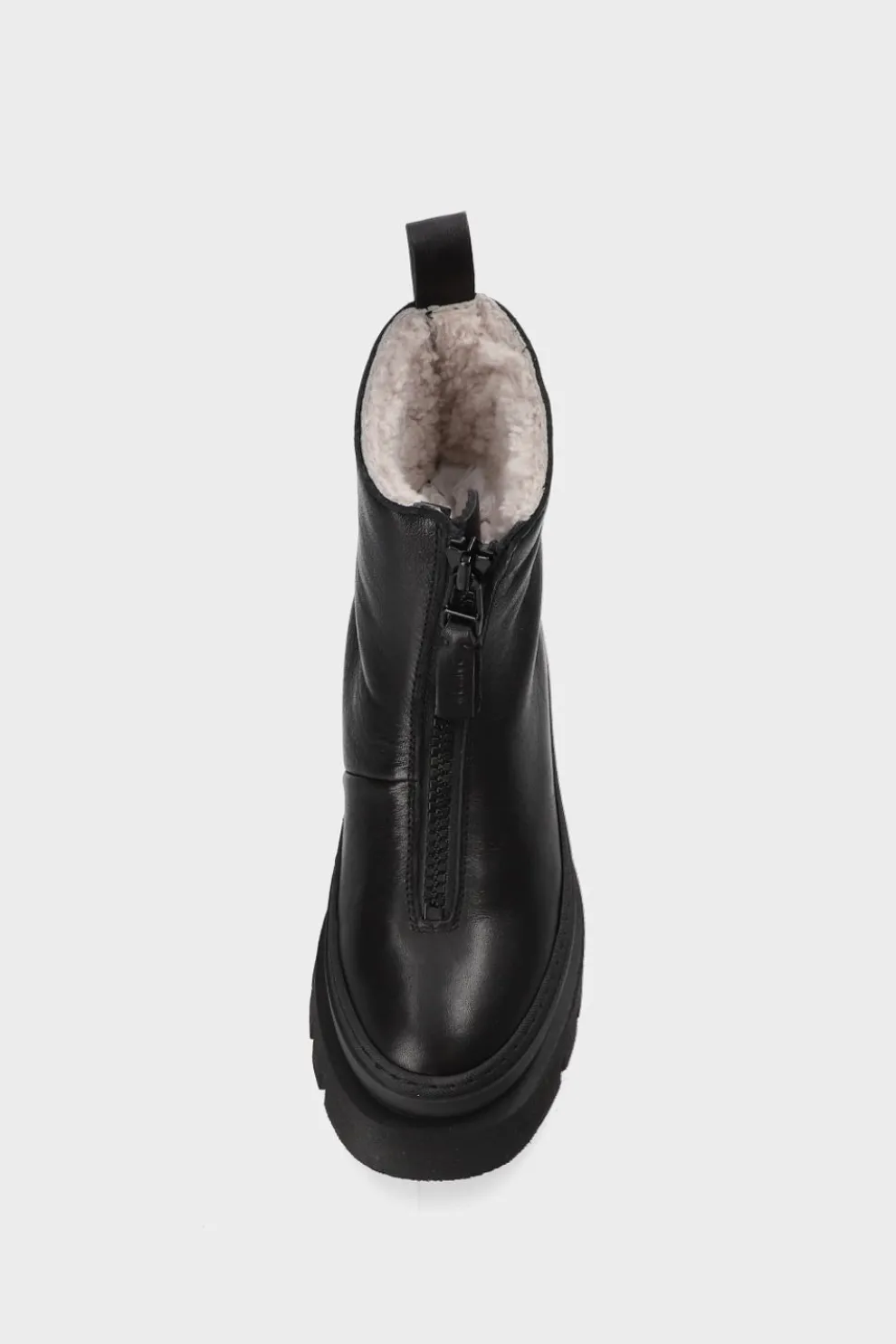 In Het Zwart. Enkellaarzen Met Ritssluiting Van Glad Leer Met Vegan Teddyvoering. Enkelhoog Silhouet. Ronde Dop. Zwarte Ritssluiting Aan De Voorkant. Trek De Lus Aan De Schacht. Subtiele Branding Aan De Buitenkant. Een Warme En Relaxte Stijl Voor Koele Herfstdagen.Onze Schoenen Zijn Ontworpen In Kopenhagen En Gemaakt In Europa. Het Leer Komt Uit Geselecteerde, Door Een Familie Gerunde Fabrieken In Italië.