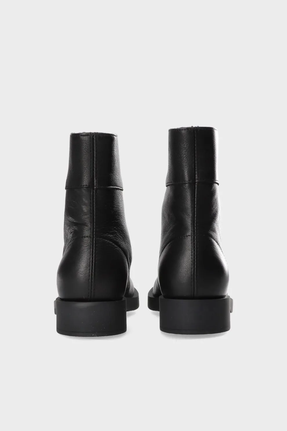 In Het Zwart. Enkellaarzen Gemaakt Van Glad Leer. Minimalistisch Silhouet. Rits Aan De Achterkant Van De Schoen. Aparte Elementen. Geborduurde Details. Logo Aan De Buitenkant. Ronde Neus. Gladde Rubberen Zool Die Goede Grip Biedt. Minimalistische Enkellaarsjes Met Verrassende Details.Onze Schoenen Zijn Ontworpen In Kopenhagen En Gemaakt In Europa. Het Leer Komt Uit Geselecteerde Familiebedrijven In Italië.