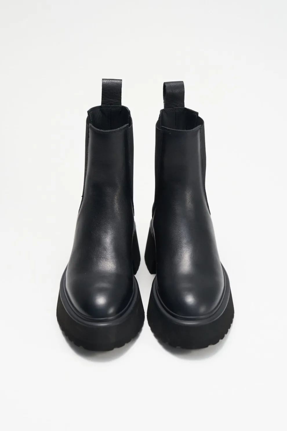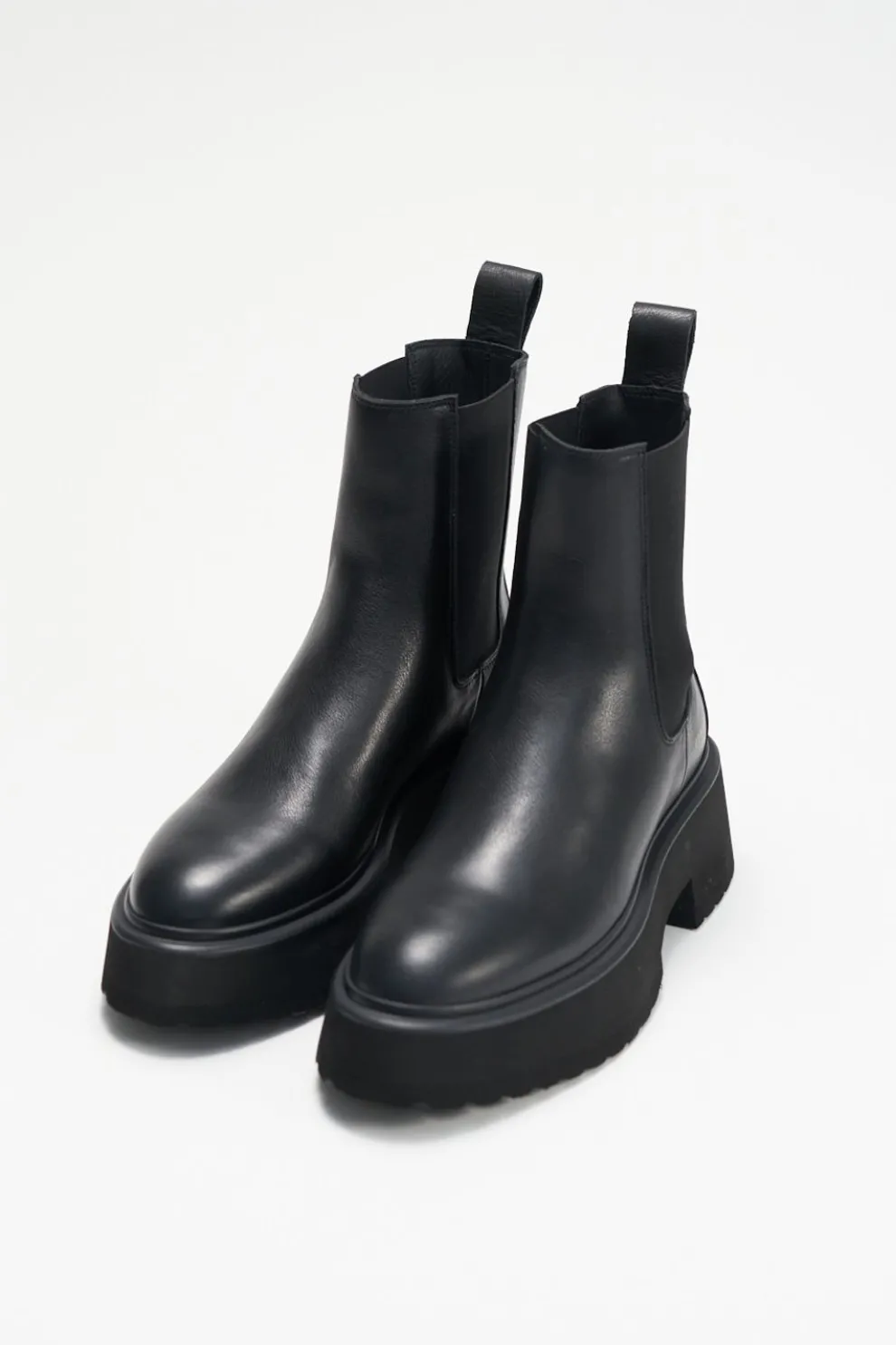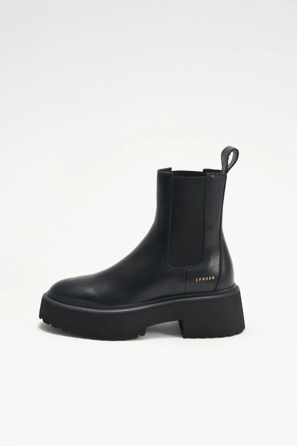 In Het Zwart. Chelsealaarzen Gemaakt Van Glad Leer. Enkelhoog Silhouet. Puntig. Elastische Inzetstukken. Subtiele Branding Aan De Buitenkant. Trek De Lus Aan De Schacht. Een Tijdloze Klassieker Met Iets Speciaals.Onze Schoenen Zijn Ontworpen In Kopenhagen En Vervaardigd In Europa. Het Leer Komt Uit Geselecteerde Familiebedrijven In Italië.