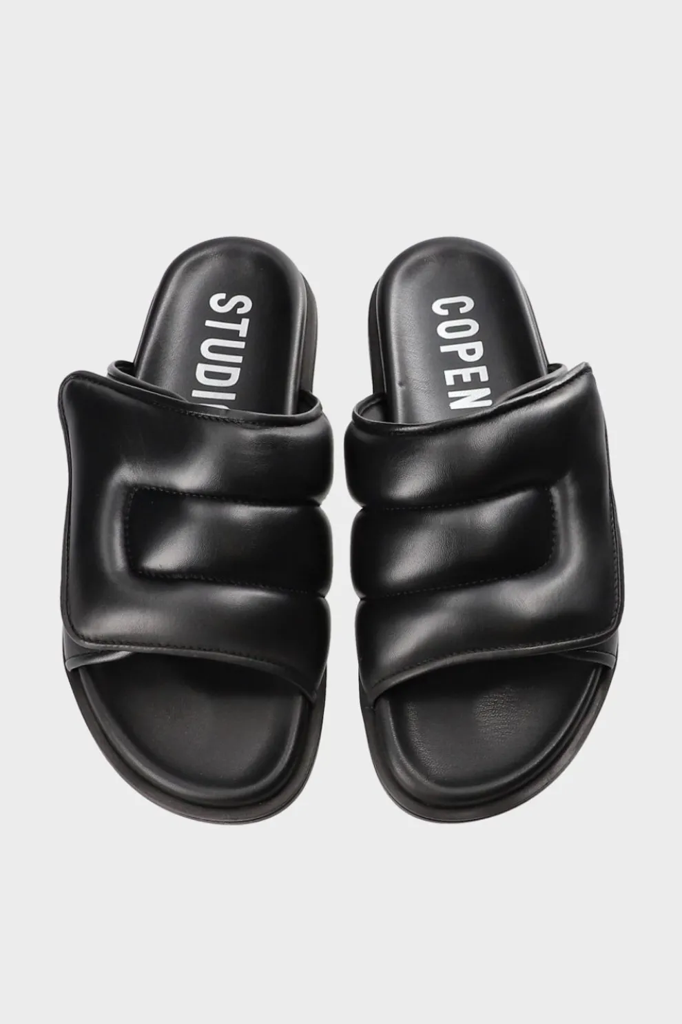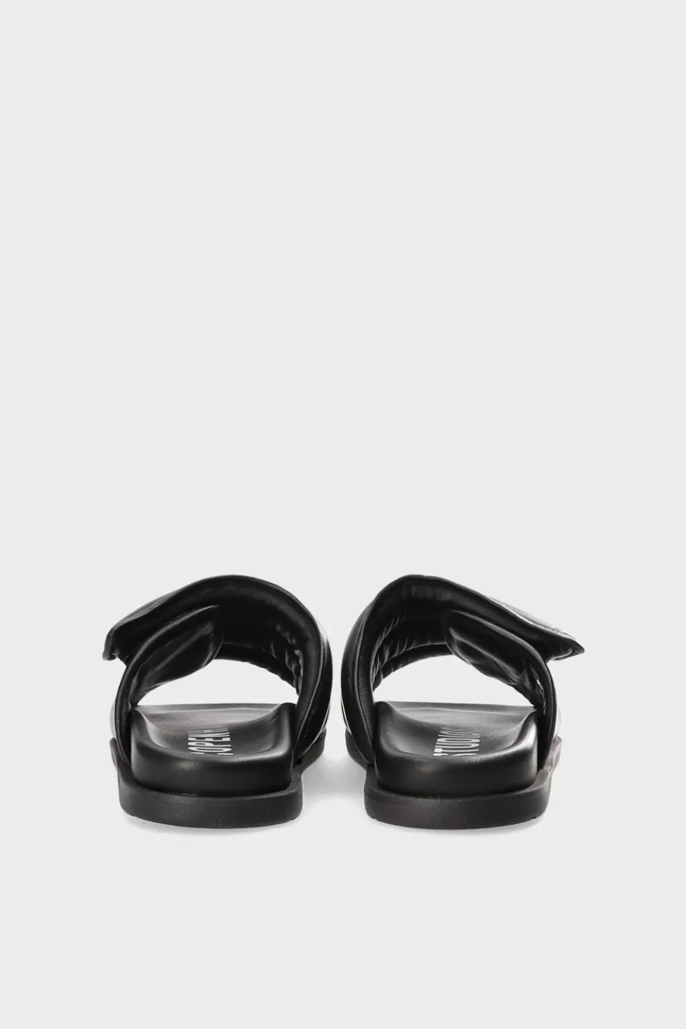 In Zwart. Slippers Van Zacht Nappaleer. Silhouet Met Enkele Riem. Met Een Verstelbare Brede Band En Geborduurde Details. Binnenzool Met Een Lichtgewicht Anatomisch Voetbed En Opvallende Branding. Platte Rubberen Zool. Minimalistische Slippers Met Een Zacht Silhouet.Onze Schoenen Zijn Ontworpen In Kopenhagen En Gemaakt In Europa. Het Leer Is Afkomstig Van Geselecteerde, Door Een Familie Gerunde Fabrieken In Italië.