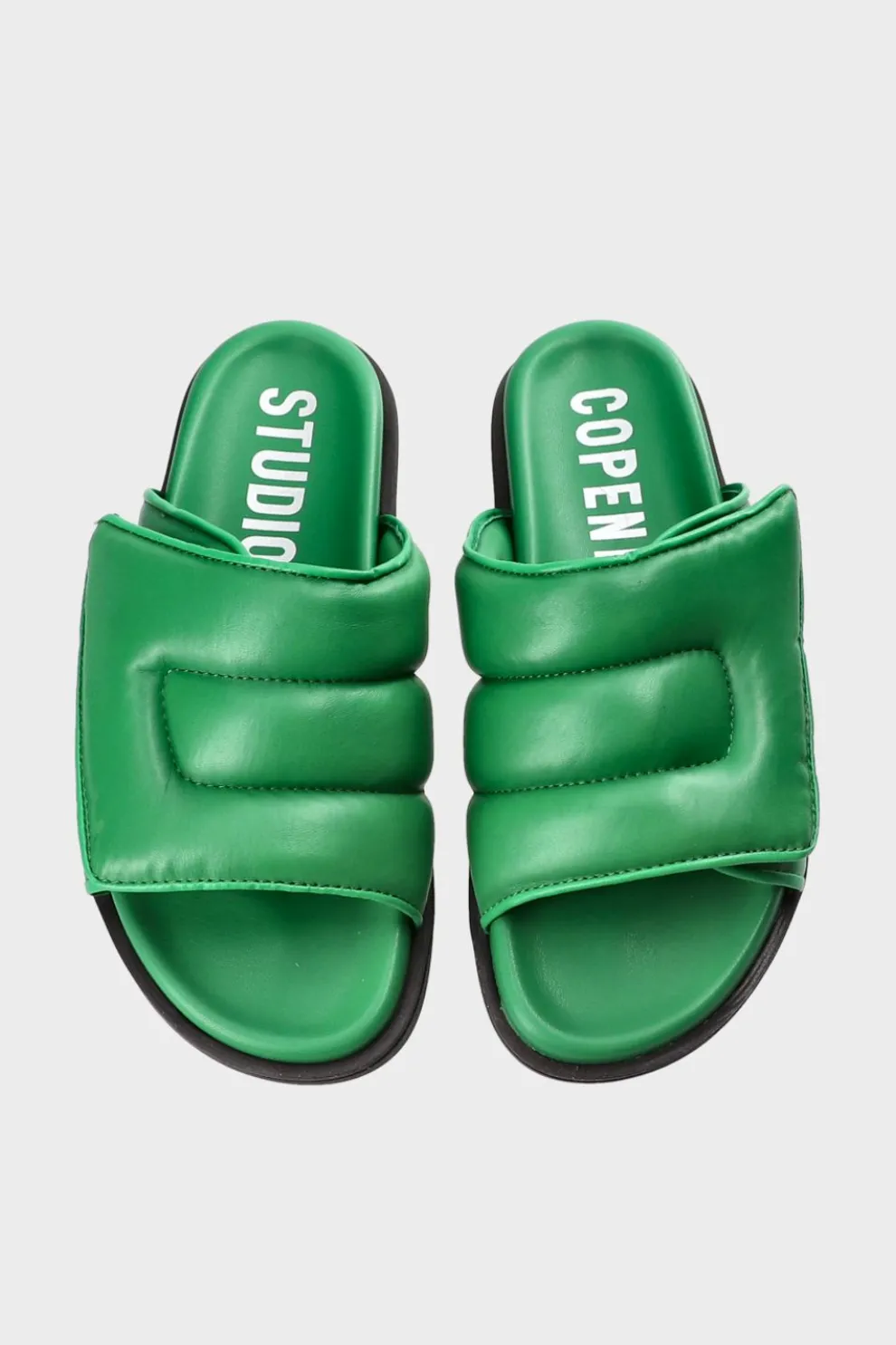 In Felgroen. Slippers Van Zacht Nappaleer. Silhouet Met Enkele Riem. Met Een Verstelbare Brede Band En Geborduurde Details. Tonale Binnenzool Met Een Lichtgewicht Anatomisch Voetbed En Opvallende Branding. Platte Contrastzool. Minimalistische Slippers Met Een Zacht Silhouet.Onze Schoenen Zijn Ontworpen In Kopenhagen En Gemaakt In Europa. Het Leer Is Afkomstig Van Geselecteerde, Door Een Familie Gerunde Fabrieken In Italië.