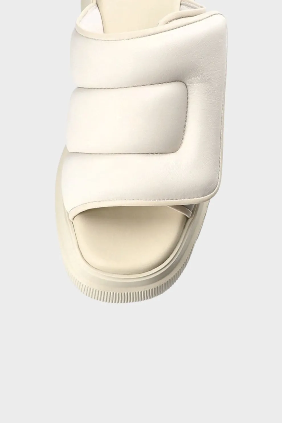 In Crèmebeige. Sandalen Van Zacht Nappaleer. Silhouet Met Enkele Riem. Met Een Verstelbare Brede Band En Geborduurde Details. Binnenzool Met Subtiele Branding. Dikke Platformzool Met Opvallend Profiel En Blokhak. Monochrome Slippers Met Expressieve Details.Onze Schoenen Zijn Ontworpen In Kopenhagen En Gemaakt In Europa. Het Leer Komt Uit Geselecteerde Familiebedrijven In Italië.